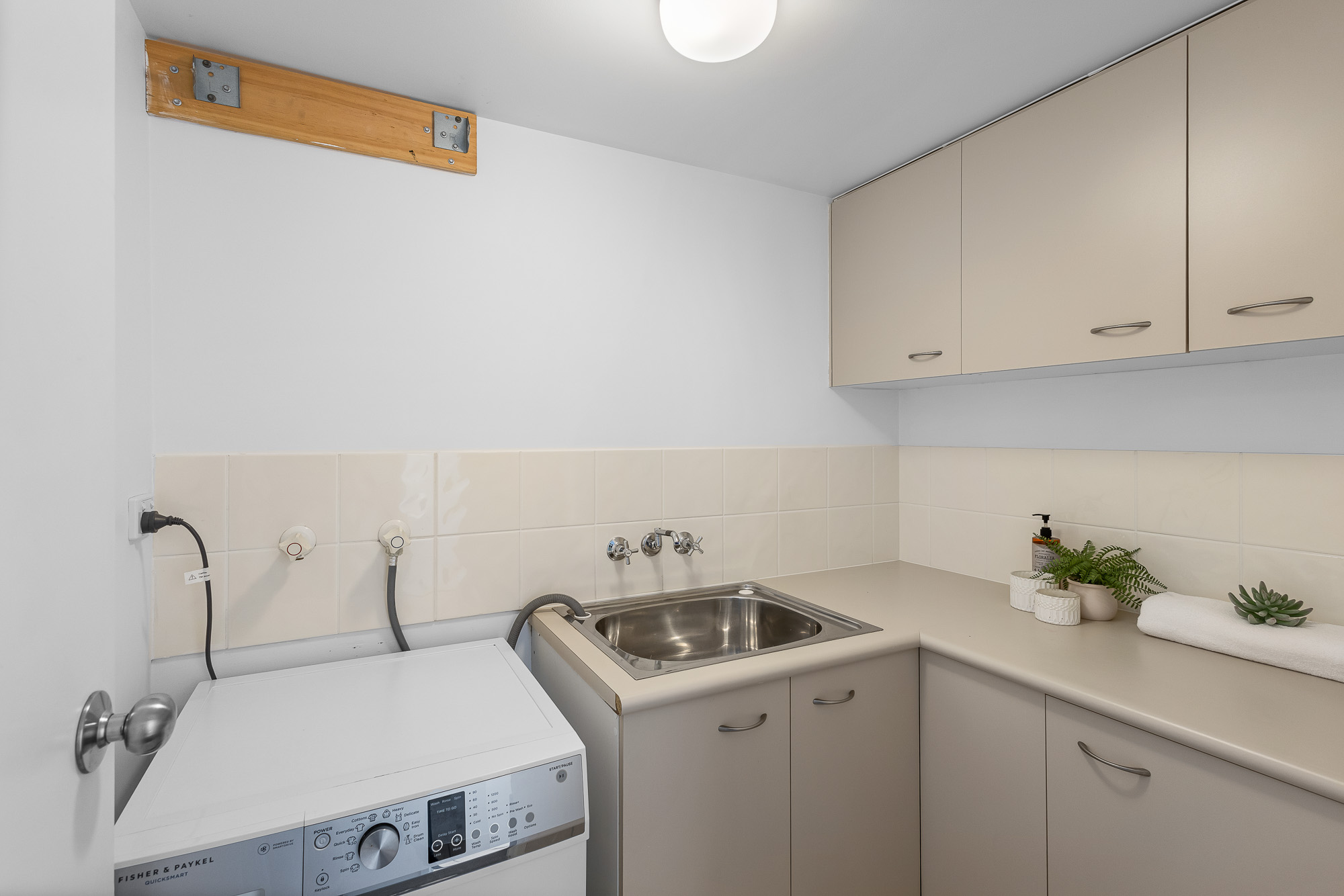 Positioned on the top floor of this boutique complex, Apartment 57 offers elevated living with a perfect north-east aspect and a generous 44m² exclusive-use balcony. From here, panoramic views sweep across Nelson Park’s tranquil lake, the lush greenbelt and the shimmering ocean beyond. It’s a front-row seat to sunrise, sea breeze and serenity.