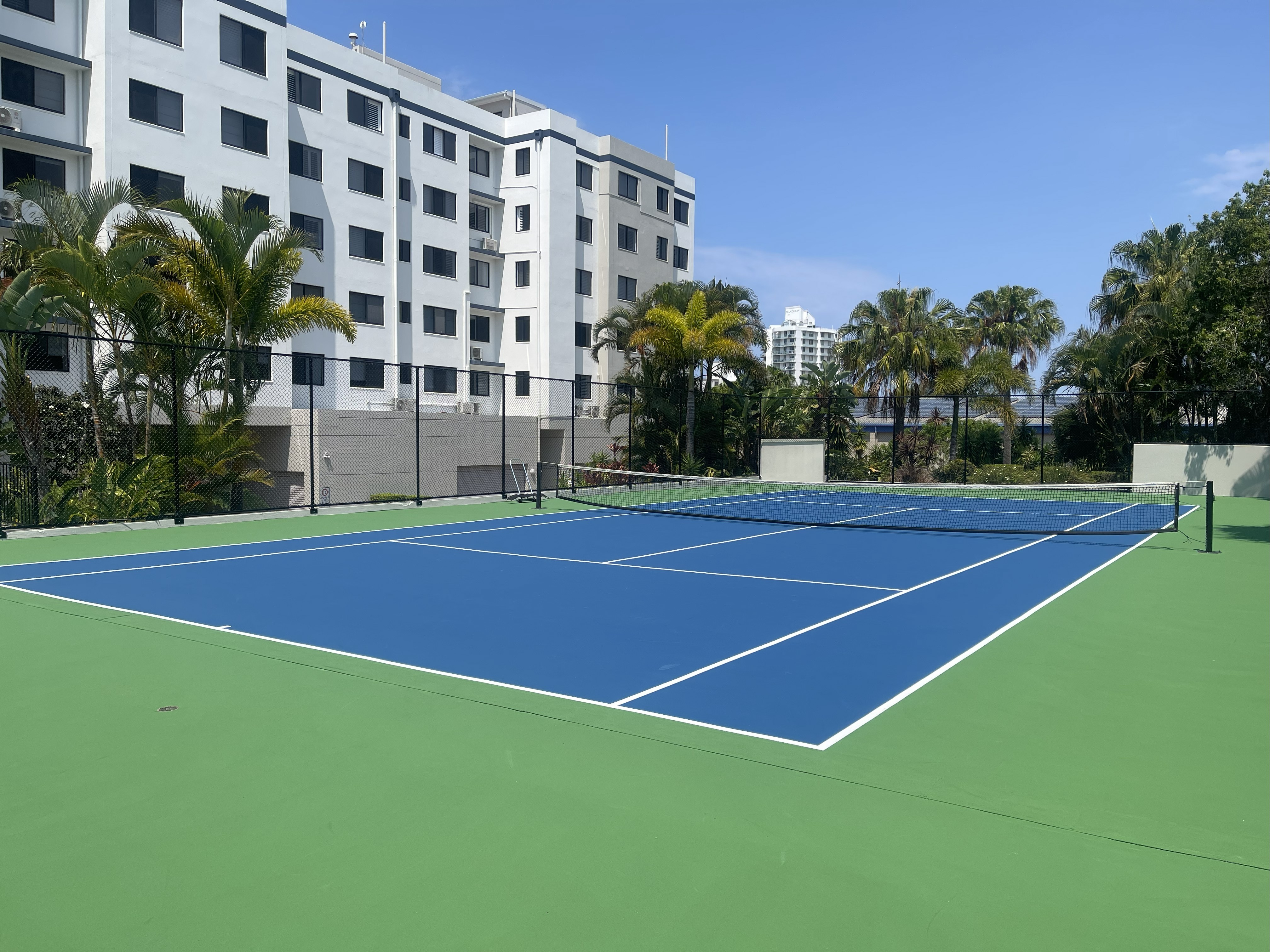 Beyond the apartment, The Mirage delivers a resort-style lifestyle with an impressive suite of amenities. Enjoy a large lagoon-style heated pool, a 15-metre heated lap pool and a children’s pool with a cascading waterfall. Unwind in the spa nestled within tropical gardens, detox in the sauna, or energise in the gym. For recreation, there’s a full-size tennis court lit for night play, a half-size basketball court and shaded barbecue areas perfect for relaxed afternoons with friends. The complex is adjacent to Nelson Park, complete with walking paths and a playground and just moments from a ten-pin bowling alley for added fun.