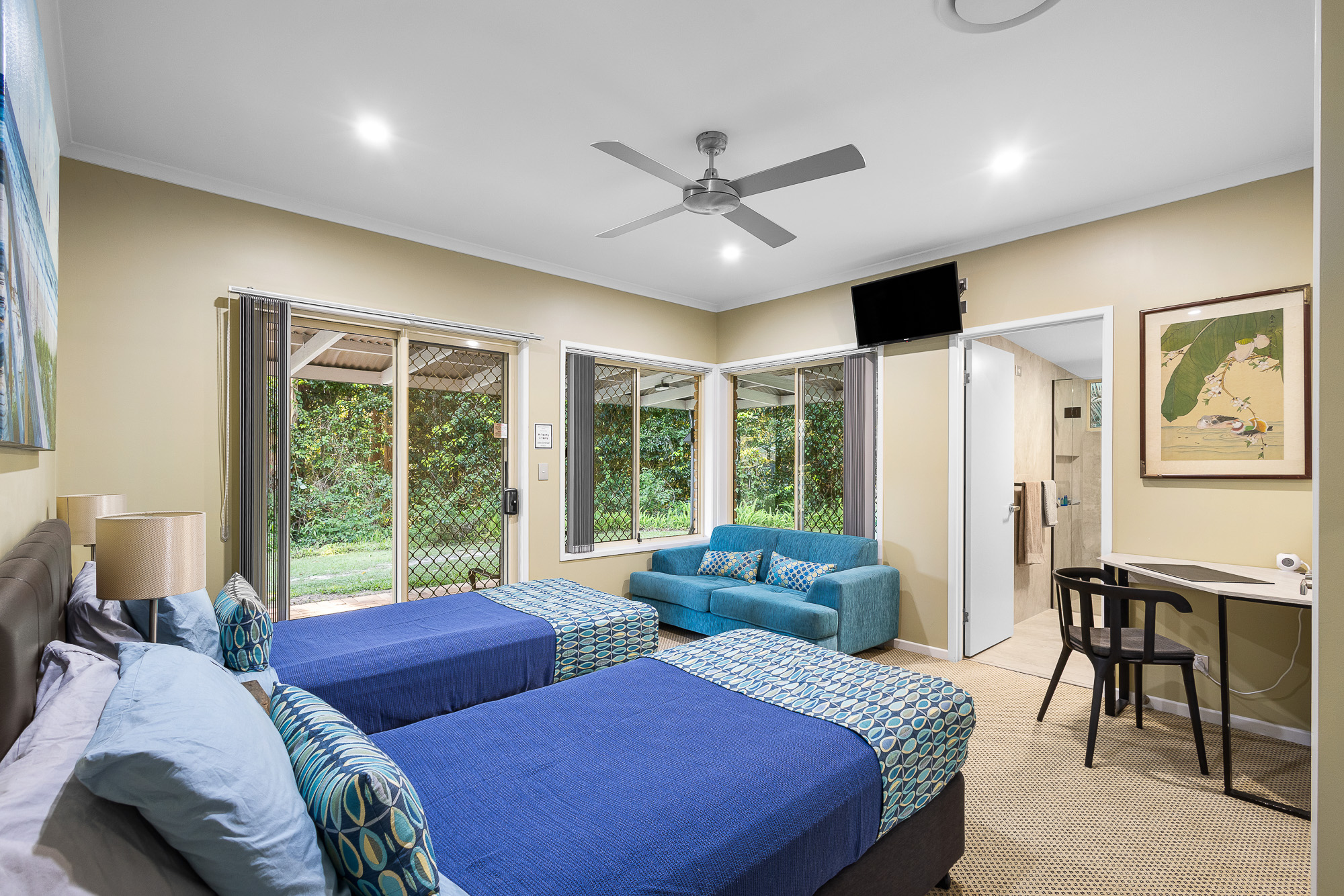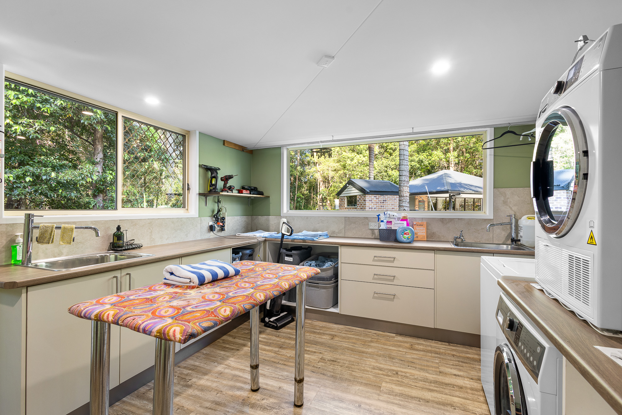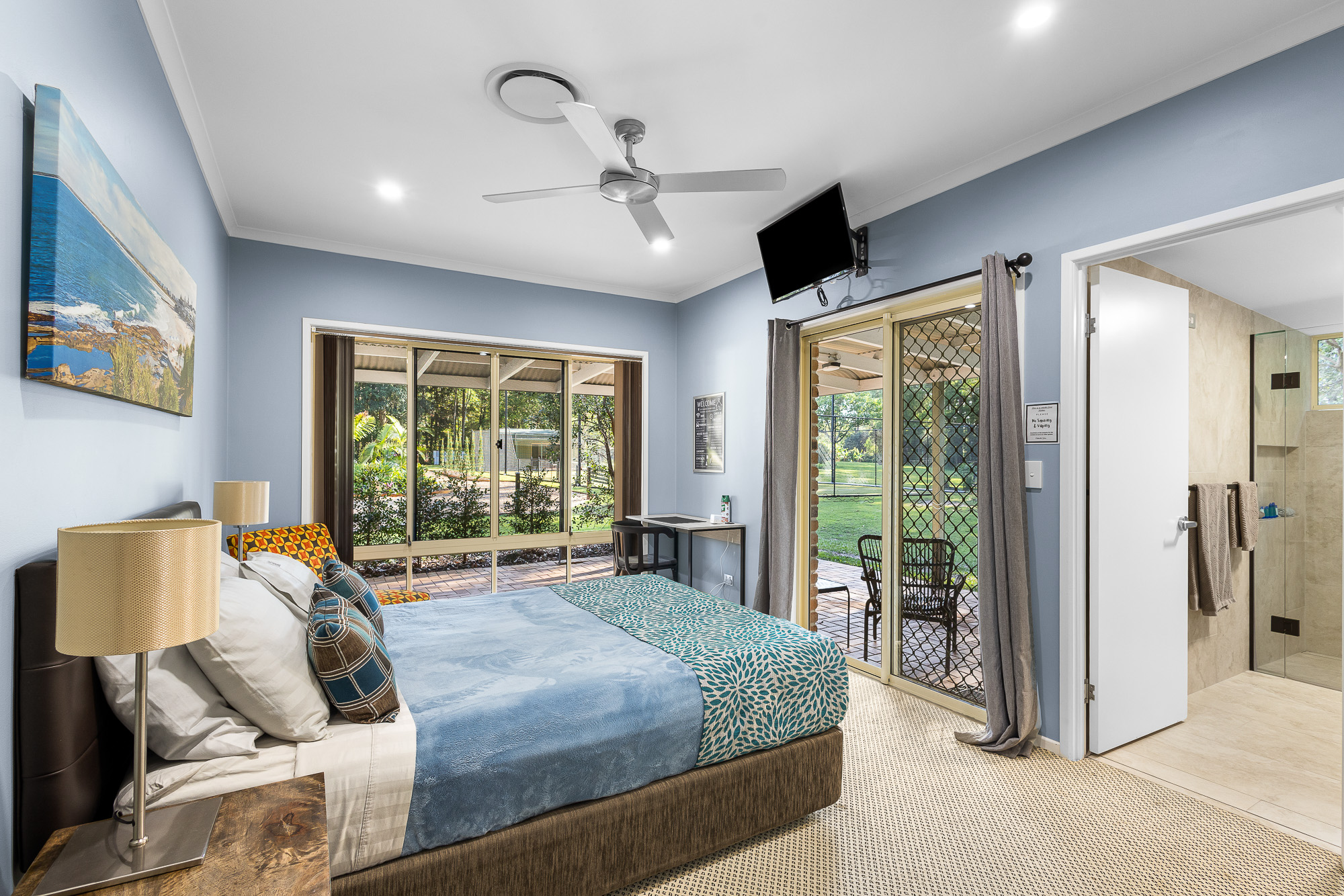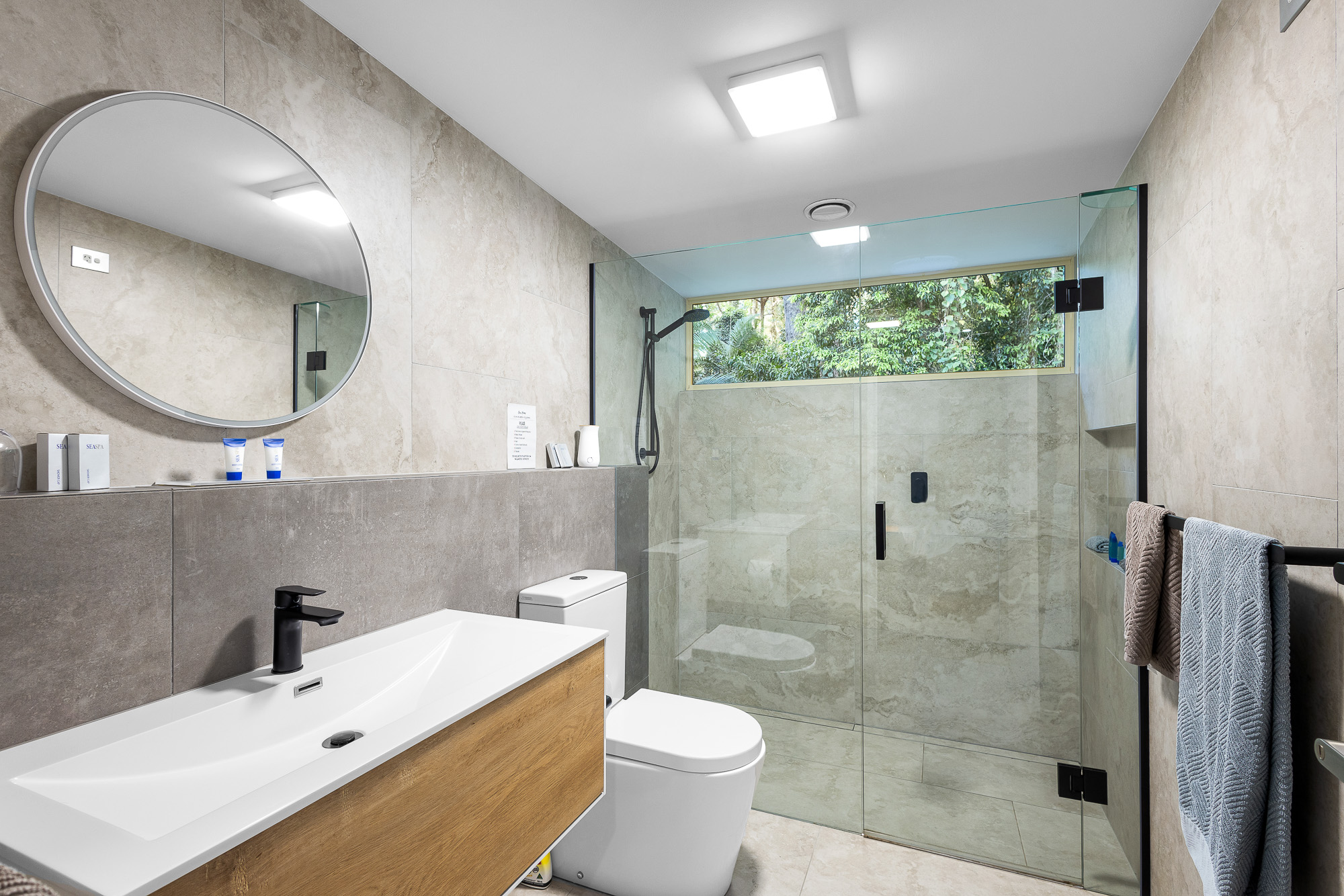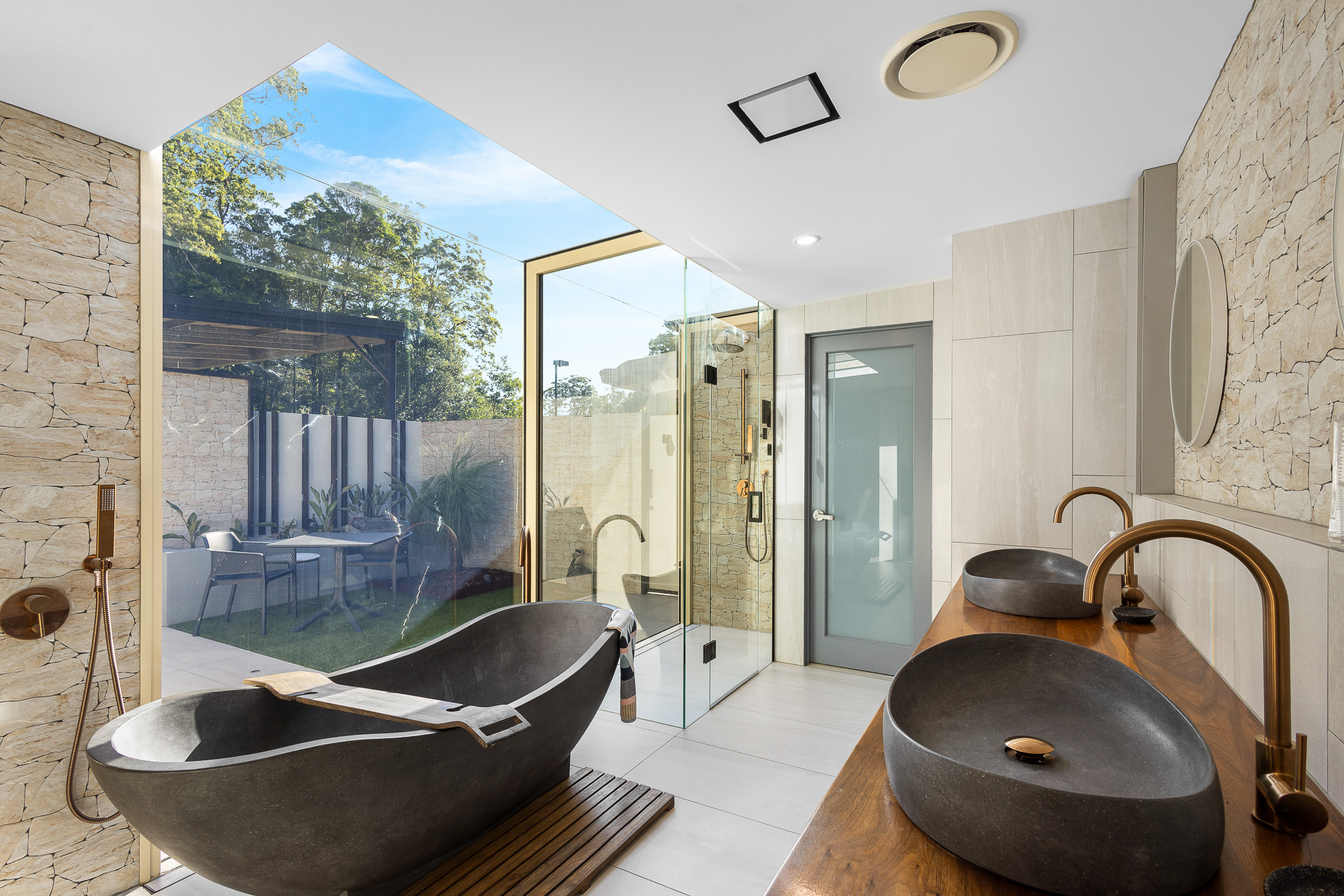 The Main Residence which boast six bedrooms ( 5 ensuited ) plus separate office, was purpose-modified for large families or Airbnb hosting. Each bedroom offers privacy and forest views, while the luxurious master suite goes a step further with its own courtyard shower and separate bath, creating a spa-like escape.
