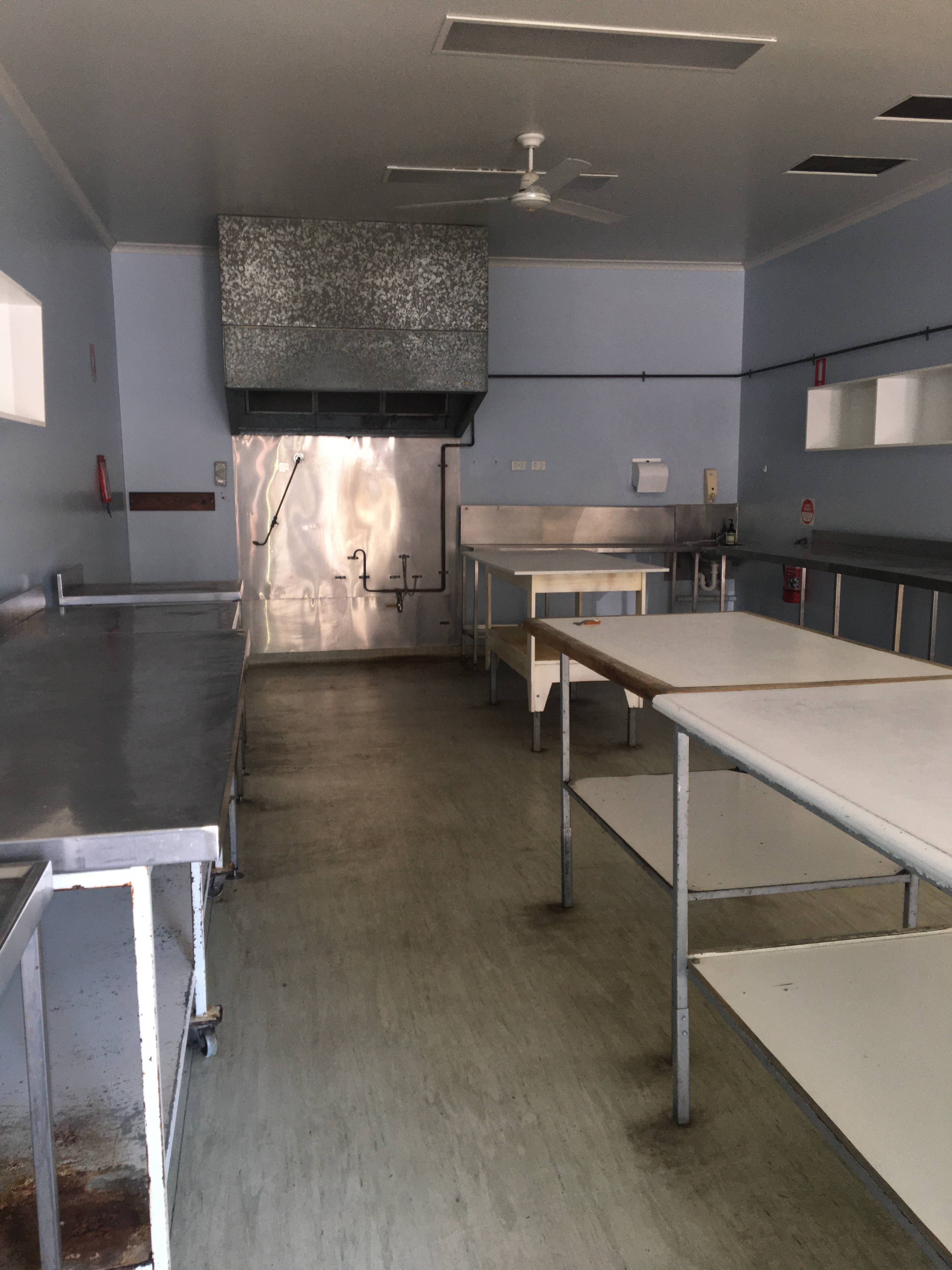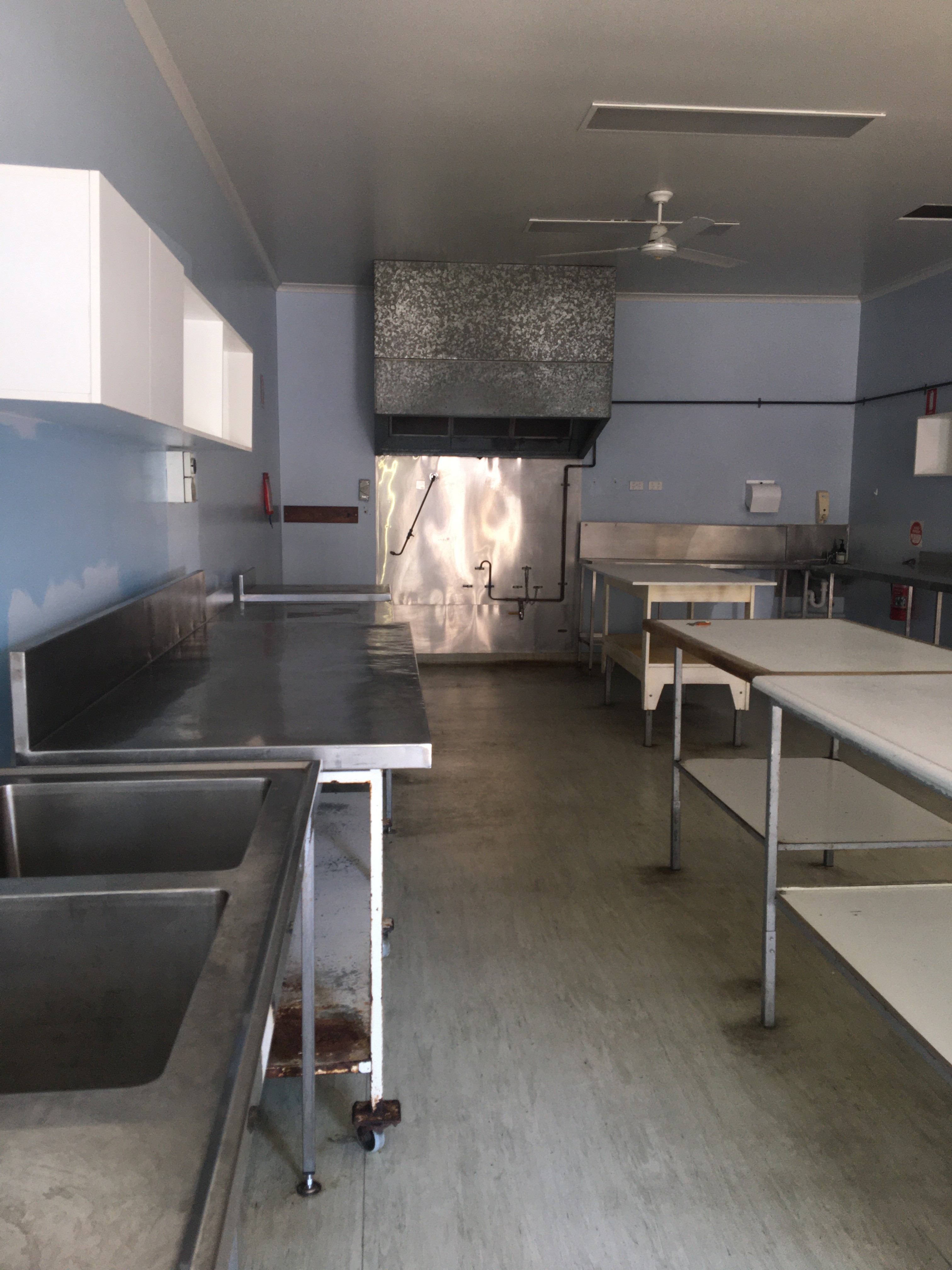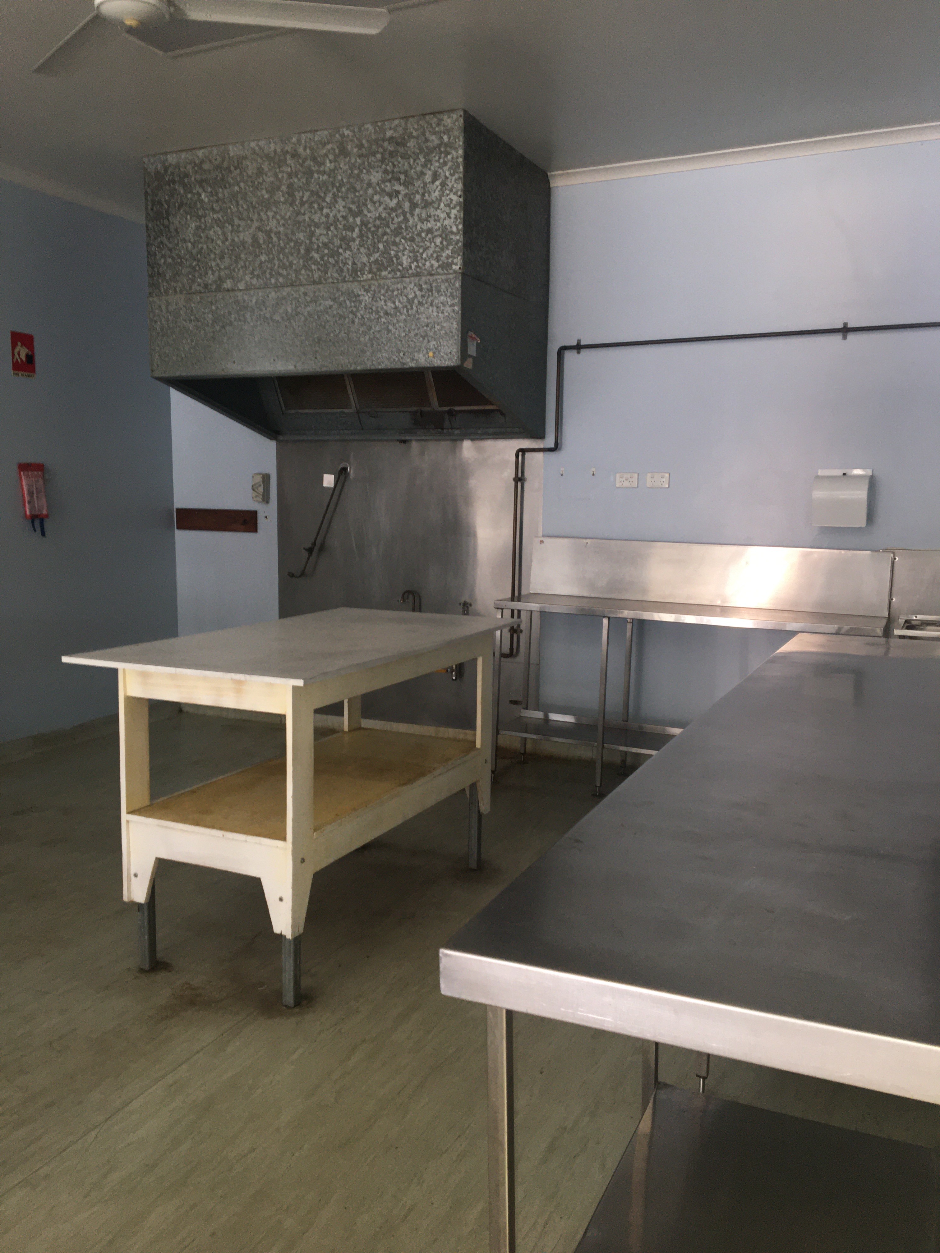 - Kitchen includes extraction canopy, sinks, stainless steel benches