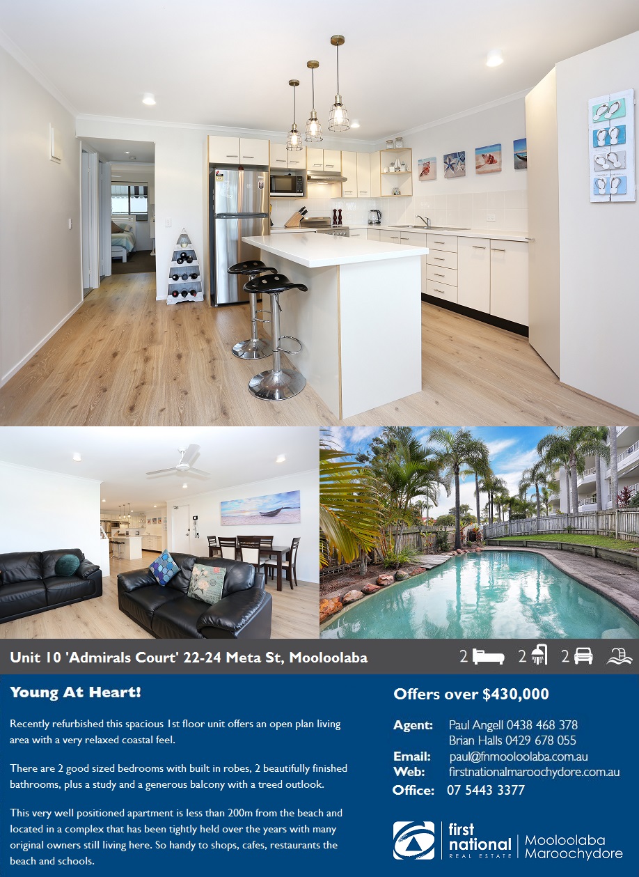 FREE Full Colour Printed A4 Property Brochures distributed at open homes and in reception of our Mooloolaba and Maroochydore offices